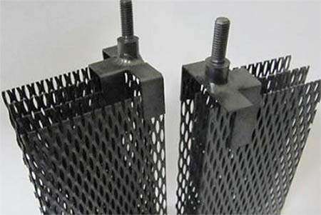 鈦陽極分類:按照在電化學反應中陽極析出氣體來區分,析出氯氣的稱析氯陽極,如釕系涂層鈦電極:析出氧化的稱為析氧陽極,如銥系涂層鈦電極和鉑鈦網/板。 析氯陽極(釕系涂層鈦極):電解液中氯離子含量高:一般在鹽酸環境及電解海水,電解食鹽水環境。如釕銥鈦陽極,釕銥錫鈦陽極。 析氧陽極(銥系涂層鈦電極):電解液一般為硫酸環境。對應我公司產品為銥鉭陽極,銥鉭錫陽極,高銥陽極。 鍍鉑陽極(白金鈦網/白金鈦板):鈦為基材。表面鍍上貴金屬鉑,鍍層厚度一般為1-5um(微米)。白金鈦網網孔規格一般為12.7*4.5mm或6*3.5mm.